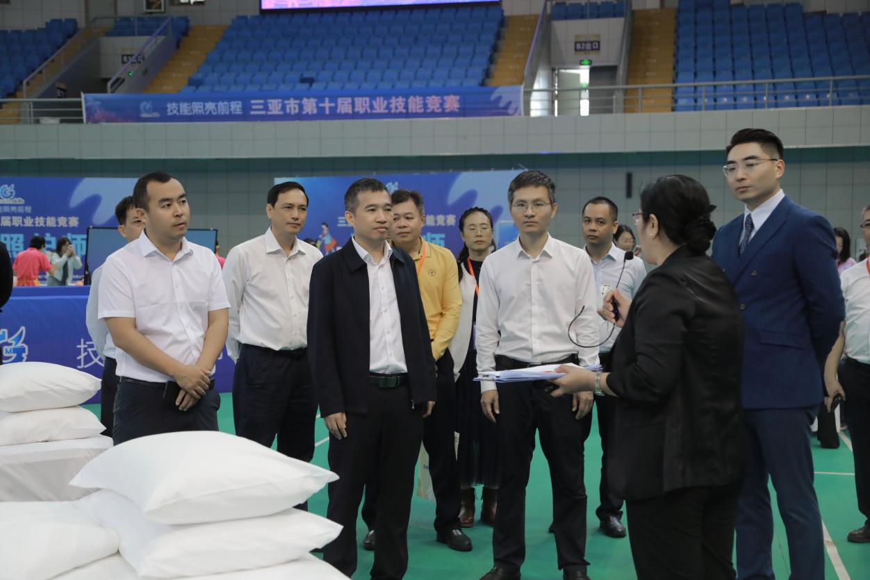 海南省人力资源开发局党组成员、副局长刘小俊受邀出席开幕仪式,并与来自陵水、五指山、保亭、乐东等三亚经济圈市县多地人社部门负责一同视察场,深入了解决赛项目的组织实施情况